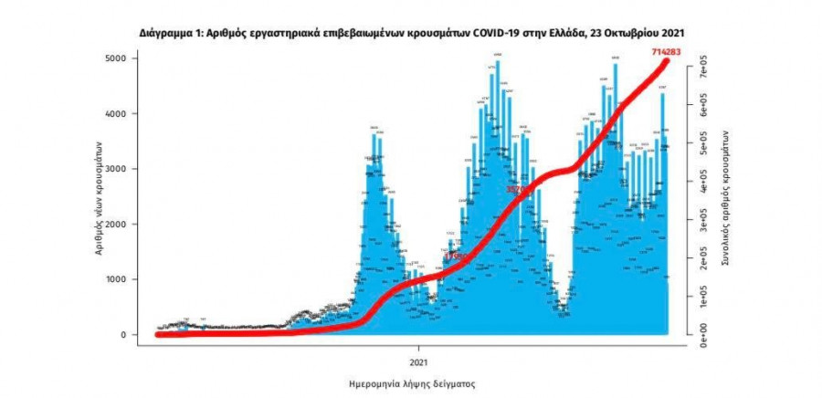 Κρούσματα σήμερα: Η εξέλιξη της πανδημίας στη χώρα μας, με βάση τα επίσημα στοιχεία του ΕΟΔΥ, το Σάββατο 23 Οκτωβρίου.