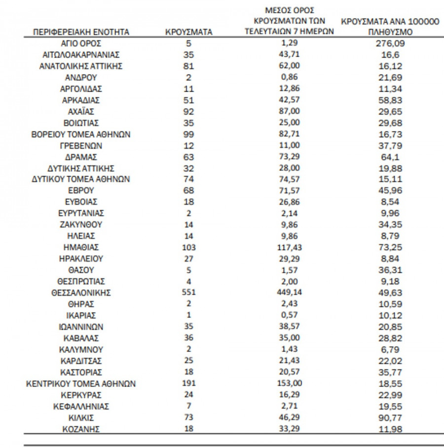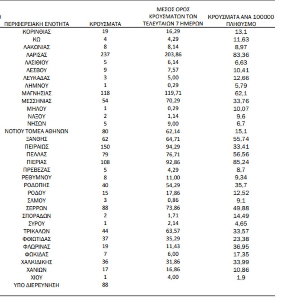 Με βάση τα επιβεβαιωμένα κρούσματα των τελευταίων 7 ημερών, 149