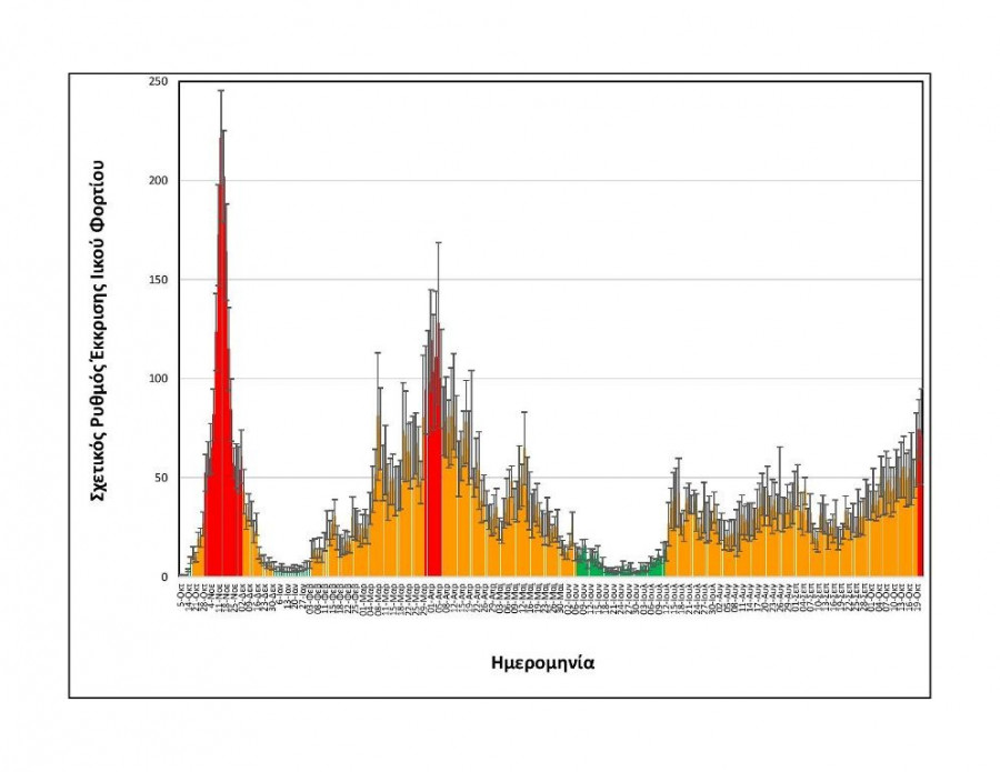 - Αυξημένη (+28%) σε σχέση με τη μέση τιμή των δύο αμέσως προηγούμενων μετρήσεων της Δευτέρας 18/10 και της Τρίτης 19/10.