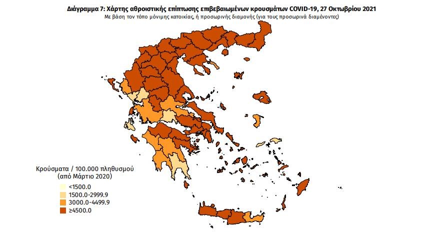 Κρούσματα σήμερα: Η εξέλιξη της πανδημίας στη χώρα μας, με βάση τα επίσημα στοιχεία του ΕΟΔΥ την Τετάρτη (27/10)