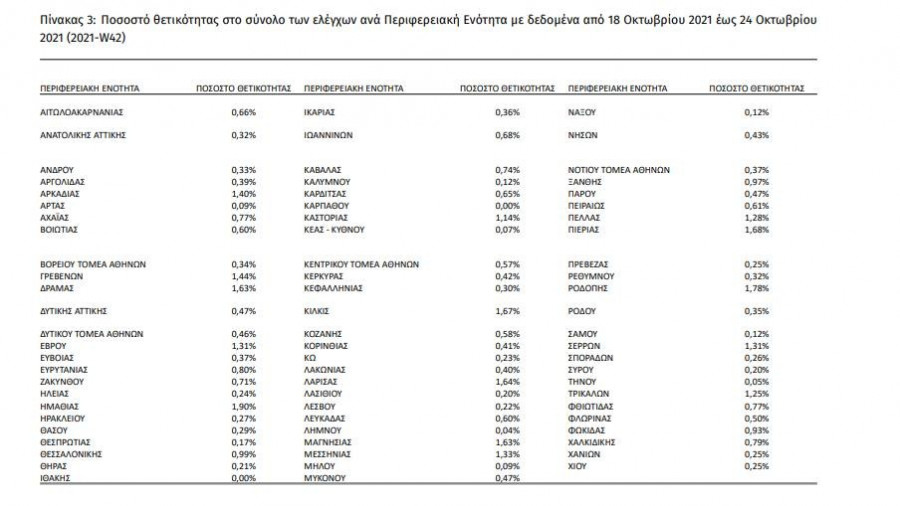 Δείτε επίσης το ποσοστό θετικότητας ανά Περιφέρεια: