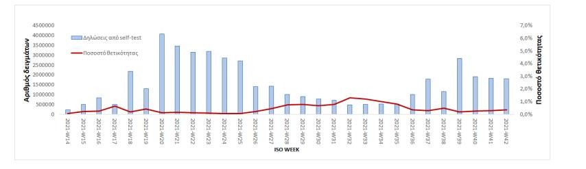 Διάγραμμα 10: Ποσοστό θετικότητας ανά ISO WEEK με βάση το σύνολο των αυτοδιαγνωστικών ελέγχων COVID-19