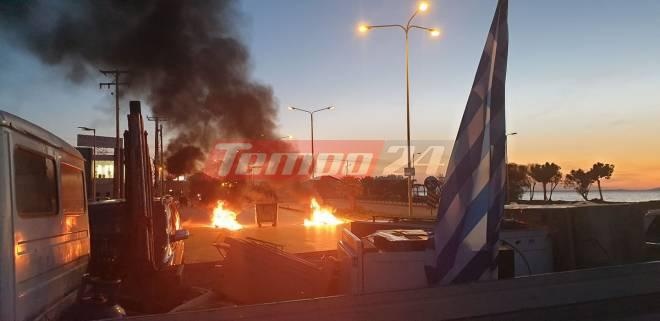 Κλειστή παραμένει η Πατρών - Πύργου στο ύψος των Ιτεών καθώς Ρομά καίνε κάδους και διαμαρτύρονται για τον θάνατο απο πυροβολισμούς αστυνομικών του 20χρονου στο Πέραμα.
