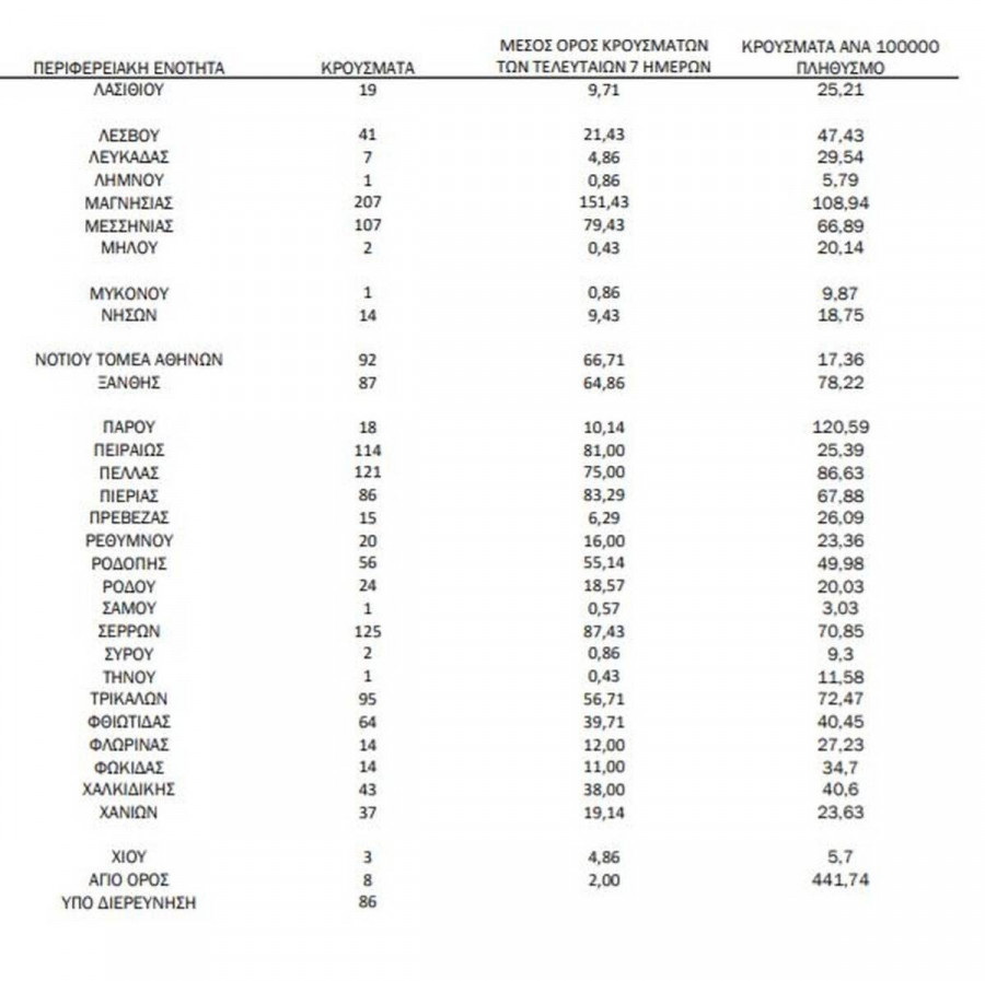 - 207 κρούσματα στην ΠΕ Μαγνησίας