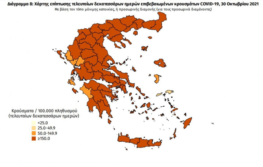 Στην Αττική σήμερα, 30/10/2021 εντοπίστηκαν νέα κρούσματα σύμφωνα με τον ΕΟΔΥ.