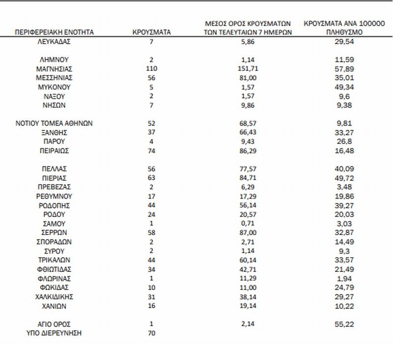 - 110 κρούσματα στην ΠΕ Μαγνησίας