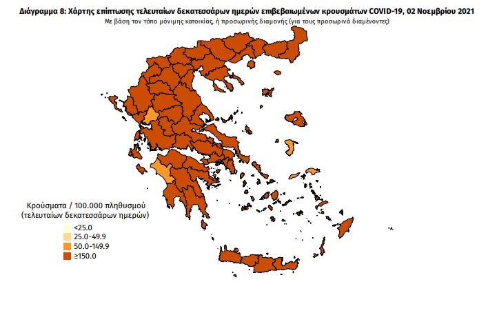 Κρούσματα σήμερα: Η εξέλιξη της πανδημίας στη χώρα μας, με βάση τα επίσημα στοιχεία του ΕΟΔΥ την Τρίτη (02/11)