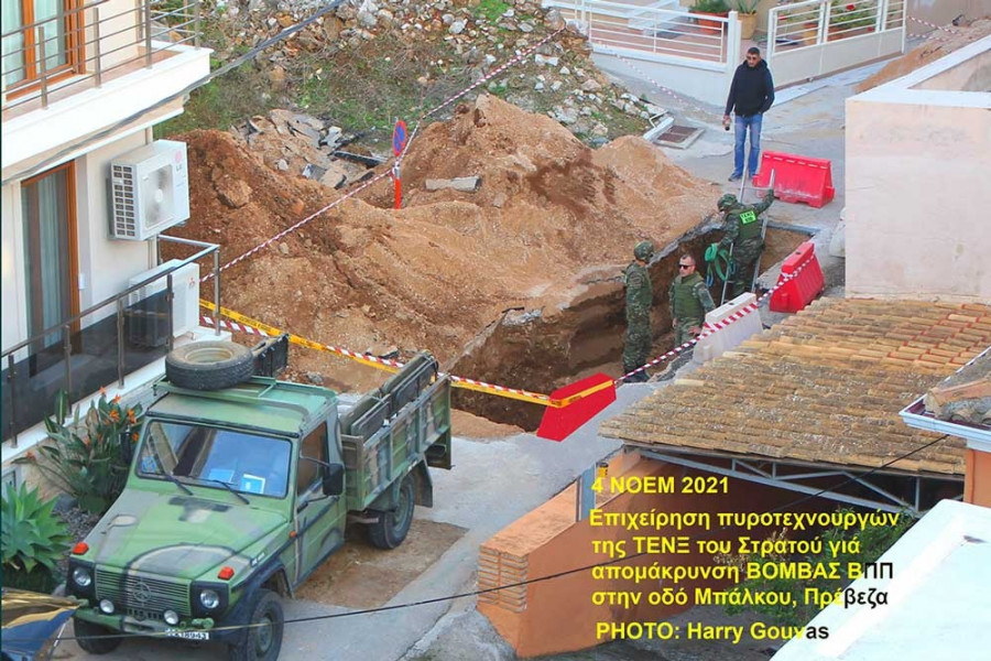 Με επιτυχία απομακρύνθηκε το πρωί της Πέμπτης βόμβα που εντοπίστηκε κατά τη διάρκεια εργασιών επί της οδού Μπάλκου στην Πρέβεζα.