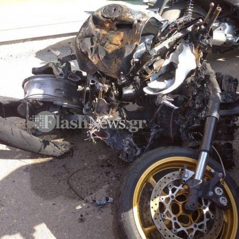 Ξαφνικά, από άγνωστο λόγο έχασε τον έλεγχο της μοτοσικλέτας η οποία προσέκρουσε με απίστευτη σφοδρότητα σε μια κολώνα με αποτέλεσμα να αναφλεγεί ενώ ο άτυχος 50χρονος διαμελίστηκε.
