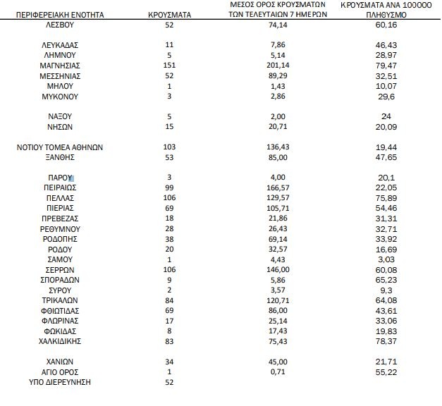 - 69 κρούσματα στην Π.Ε. Φθιώτιδας