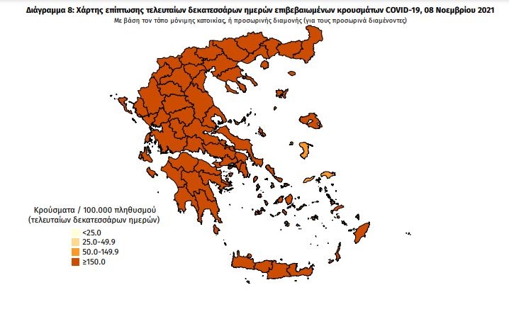 Κρούσματα σήμερα: Η εξέλιξη της πανδημίας στη χώρα μας, με βάση τα επίσημα στοιχεία του ΕΟΔΥ τη Δευτέρα (08/11)