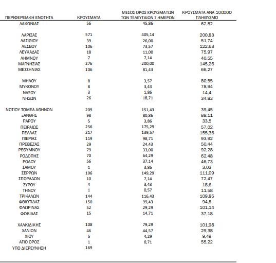 Τα κρούσματα σε ολόκληρη τη χώρα