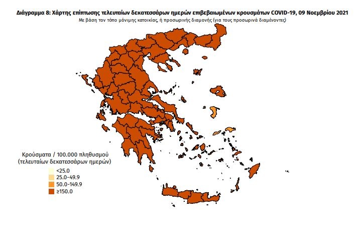 Κορονοϊός - Όλες οι ειδήσεις: Την Τρίτη 9 Νοεμβρίου 2021, ο ΕΟΔΥ ανακοίνωσε, 8.613 νέα κρούσματα του νέου ιού στη χώρα, εκ των οποίων τα 19 εντοπίστηκαν σε ελέγχους στις πύλες εισόδου της χώρας.