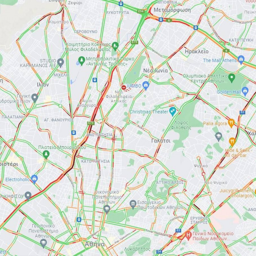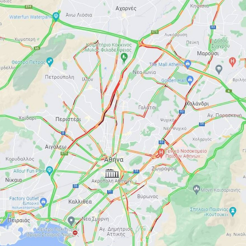 Στον Κηφισό η κίνηση είναι αυξημένη στην κάθοδο στο τμήμα από τη Νέα Φιλαδέλφεια μέχρι την Ιερά Οδό ενώ στην άνοδο του Κηφισού η κίνηση είναι αυξημένη από το Περιστέρι μέχρι τη Νέα Φιλαδέλφεια.
