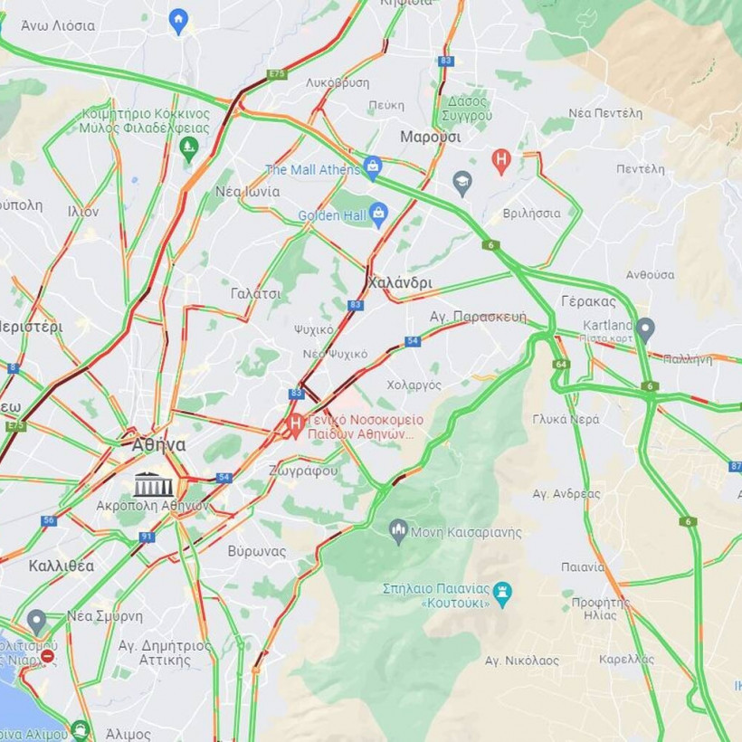Κίνηση τώρα: «Κόλαση» η άνοδος του Κηφισού - Πού εντοπίζονται προβλήματα