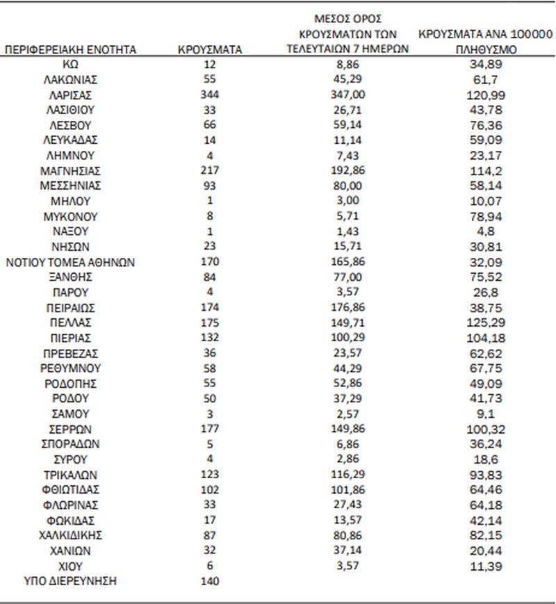 - 344 κρούσματα στην ΠΕ Λάρισας