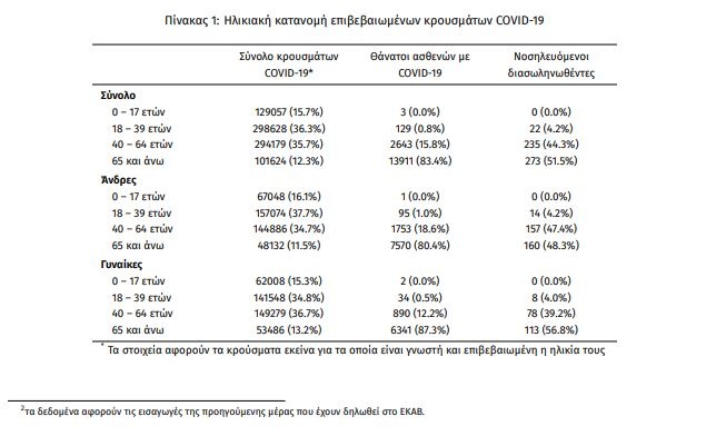 Οι νέοι θάνατοι ασθενών με COVID-19 είναι 70, ενώ από την έναρξη της επιδημίας έχουν καταγραφεί συνολικά 16.686 θάνατοι. Το 95.3% είχε υποκείμενο νόσημα ή/και ηλικία 70 ετών και άνω.