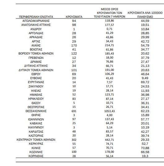Τα κρούσματα σε ολόκληρη τη χώρα