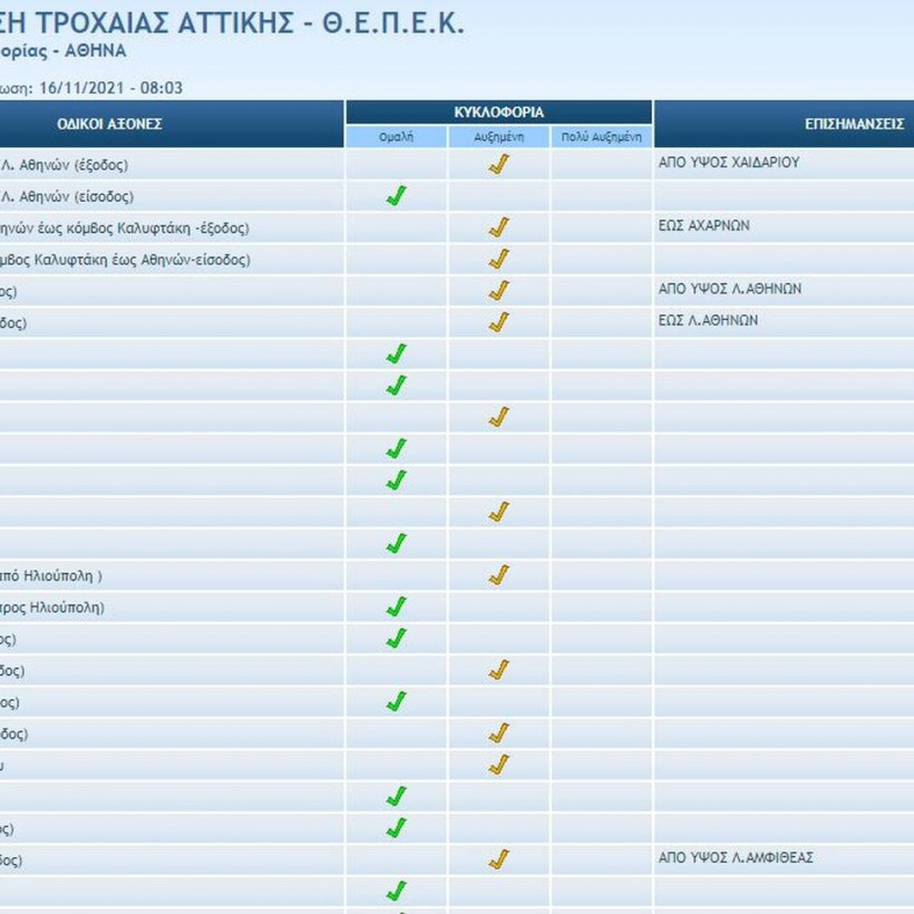 Στην άνοδο του Κηφισού η κίνηση ξεκινά από το ύψος του Αιγάλεω και συνεχίζεται μέχρι το ύψος της Νέας Φιλαδέλφειας ενώ στην κάθοδο του Κηφισού τα προβλήματα για τους οδηγούς ξεκινούν από την Μεταμόρφωση και συνεχίζονται μέχρι το ύψος των ΚΤΕΛ.