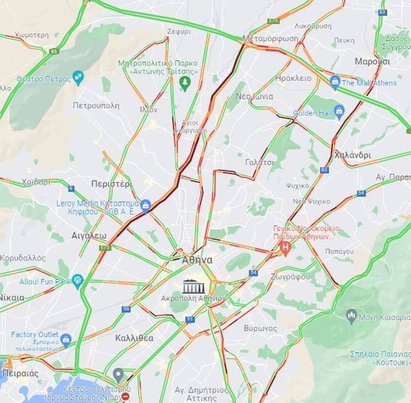 Στους υπόλοιπους δρόμους της Αττικής αυξημένη είναι η κίνηση στην Πέτρου Ράλλη, την Κατεχάκη στο ρεύμα προς Κηφισίας, στην καθοδο της Κηφισίας, στην κάθοδο της Βασιλίσσης Σοφίας αλλά και την άνοδο της Βασιλέως Κωνσταντινου, στη λεωφόρο Συγγρού από το ύψος της Αμφιθέας.