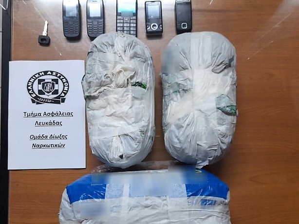 Οι πρώτες δύο συλλήψεις έγιναν στη Λευκάδα, όταν σε έλεγχο που έγινε από αστυνομικούς της Ομάδας Δίωξης Ναρκωτικών του τμήματος Ασφαλείας Λευκάδας, σε ΙΧ φορτηγό, στο οποίο επέβαιναν, ιδιοκτησίας ενός ακόμη ημεδαπού, βρέθηκαν επιμελώς κρυμμένες και κατασχέθηκαν, αυτοσχέδιες νάιλον συσκευασίες με ακατέργαστη κάνναβη, συνολικού βάρους 4.134 γραμμαρίων, πέντε κινητά τηλέφωνα και τρεις κάρτες SIM.