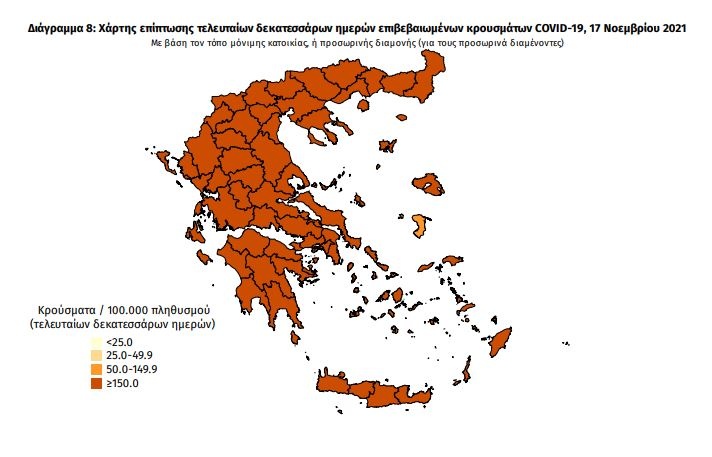 Σε ποιες περιοχές εντοπίζονται τα νέα κρούσματα σήμερα - Η εξέλιξη της πανδημίας στη χώρα μας, με βάση τα επίσημα στοιχεία του ΕΟΔΥ την Τετάρτη (17/11)