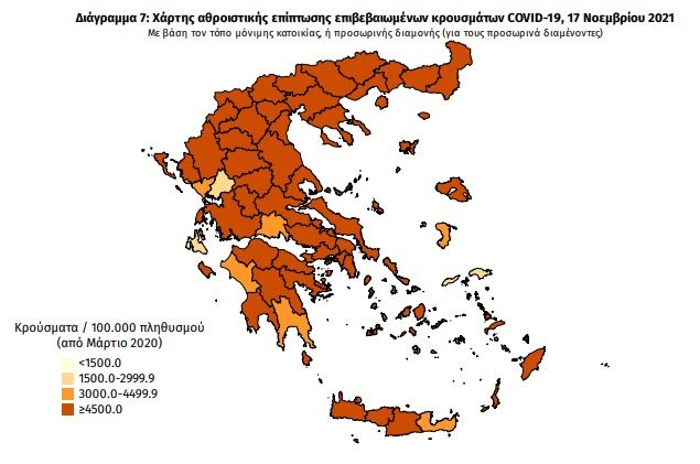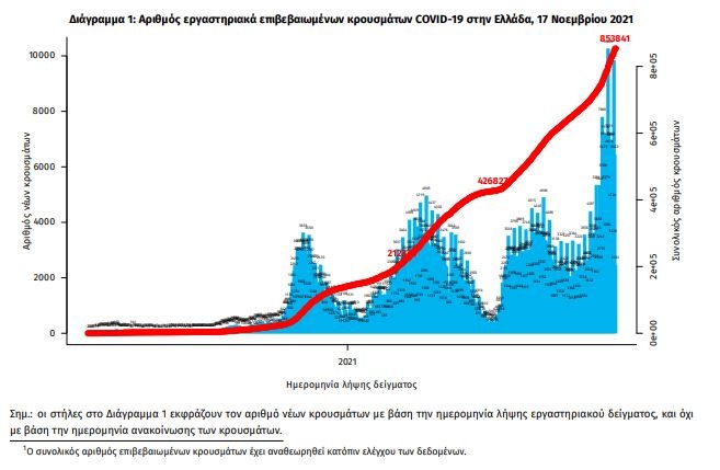 Κορονοϊός - Όλες οι ειδήσεις: Την Τετάρτη 17 Νοεμβρίου 2021, ο ΕΟΔΥ ανακοίνωσε, 6.682 νέα κρούσματα του νέου ιού στη χώρα, εκ των οποίων τα έξι εντοπίστηκαν σε ελέγχους στις πύλες εισόδου της χώρας.