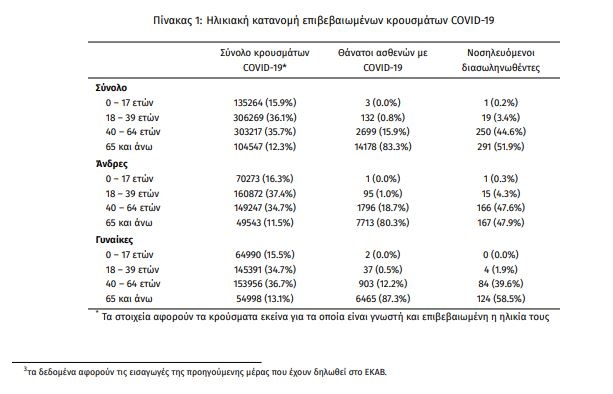 Ο συνολικός αριθμός των κρουσμάτων ανέρχεται σε 853.841 (ημερήσια μεταβολή +0.8%), εκ των οποίων 50,7%άνδρες.