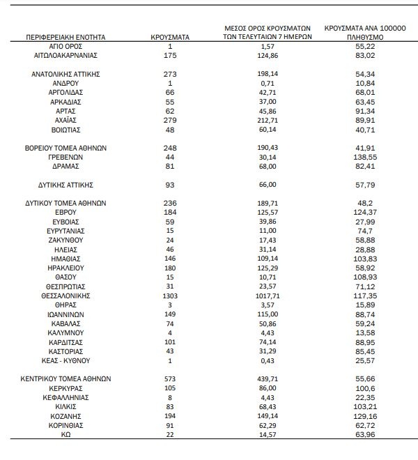 Τα κρούσματα σε ολόκληρη τη χώρα