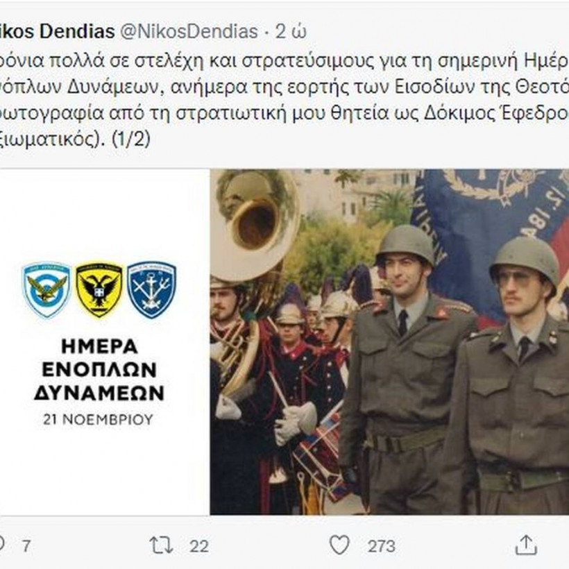 Ο Νίκος Δένδιας είπε «χρόνια πολλά» στις Ένοπλες Δυνάμεις με μία σπάνια φωτογραφία από τη θητεία του