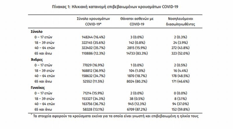 Οι νέοι θάνατοι ασθενών με COVID-19 είναι 78, ενώ από την έναρξη της επιδημίας έχουν καταγραφεί συνολικά 17.693 θάνατοι. Το 95.4% είχε υποκείμενο νόσημα ή/και ηλικία 70 ετών και άνω.