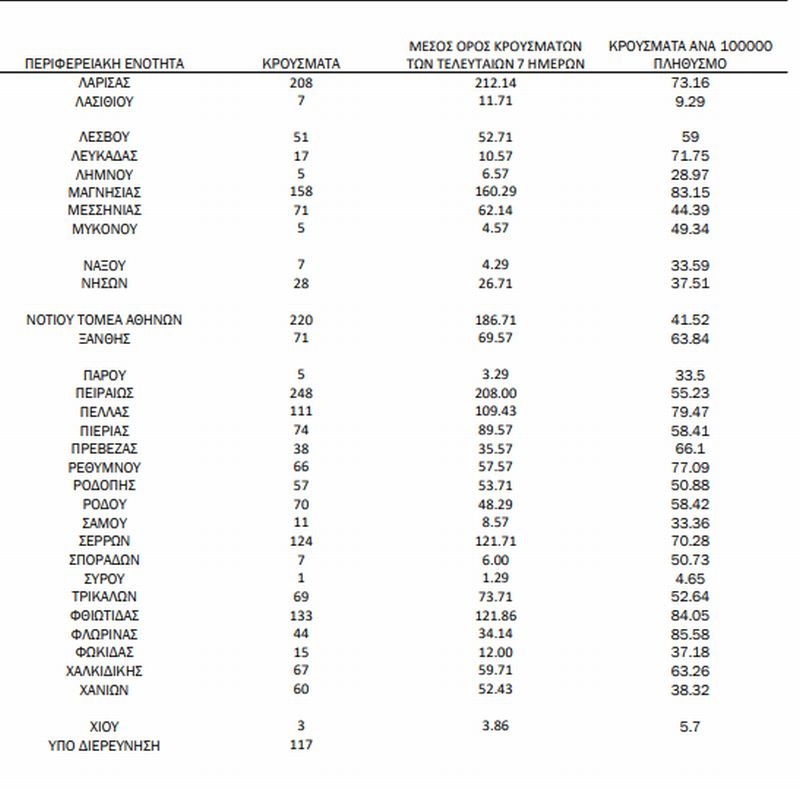 - 208 κρούσματα στην ΠΕ Λάρισας