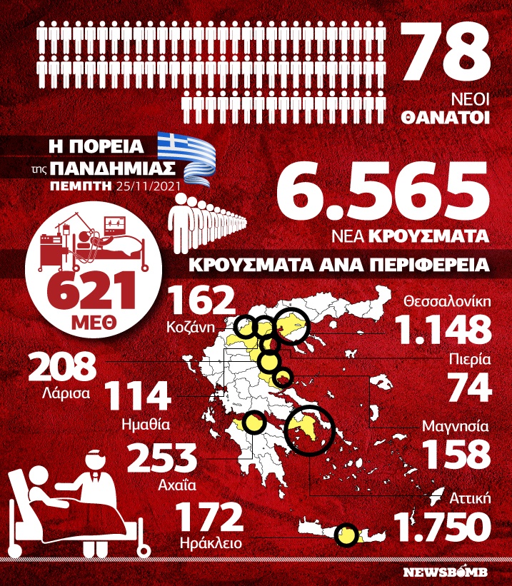 Κορονοϊός – Όλες οι ειδήσεις: Σταθερά στο... θεό και σήμερα τα κρούσματα - Ανησυχία για την «εκτόξευση» των διασωληνωμένων στα νοσοκομεία της χώρας. Όλα τα στοιχεία στο Infographic του Newsbomb.gr.