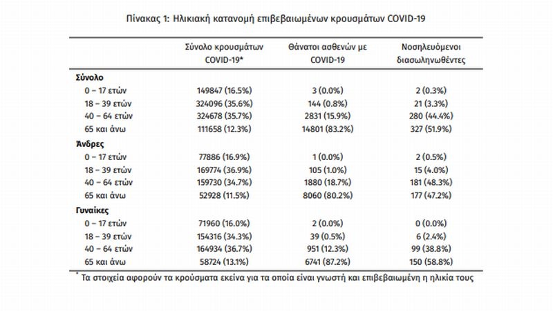 Οι νέοι θάνατοι ασθενών με COVID-19 είναι 86, ενώ από την έναρξη της επιδημίας έχουν καταγραφεί συνολικά 17.779 θάνατοι. Το 95.4% είχε υποκείμενο νόσημα ή/και ηλικία 70 ετών και άνω.