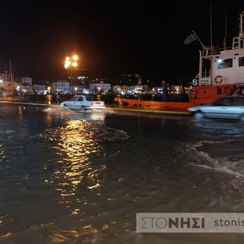 Ποτάμια οι δρόμοι στη Μυτιλήνη από τις ισχυρές βροχοπτώσεις - Πτώσεις δέντρων από τους θυελλώδεις ανέμους