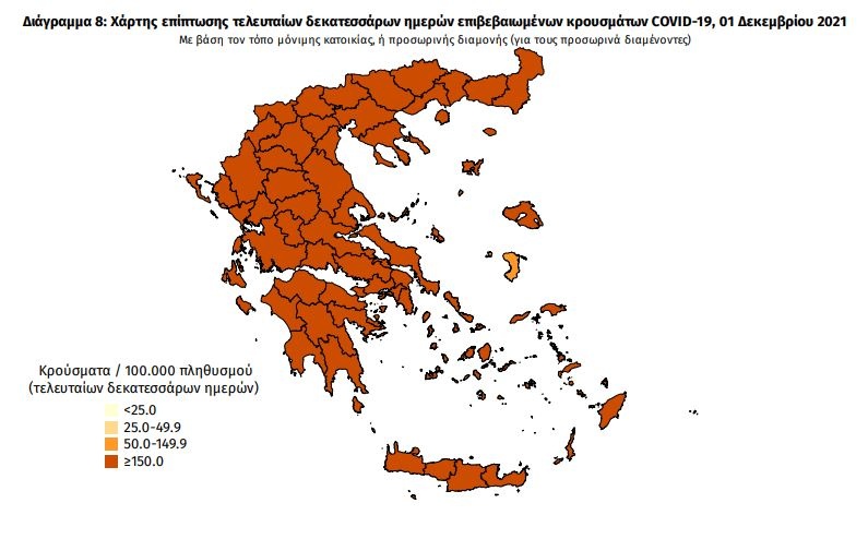 Κορονοϊός - Όλες οι ειδήσεις: Την Τετάρτη, 1η Δεκεμβρίου 2021, ο ΕΟΔΥ ανακοίνωσε, 6.196 νέα κρούσματα του νέου ιού στη χώρα, εκ των οποίων τα τρια εντοπίστηκαν σε ελέγχους στις πύλες εισόδου της χώρας.