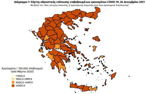 Πίνακας 2: Ημερήσιος αριθμός και κρούσματα ανά 100.000 πληθυσμού επιβεβαιωμένων εγχώριων κρουσμάτων COVID-19 ανά περιφερειακή ενότητα στις 04 Δεκεμβρίου 2021