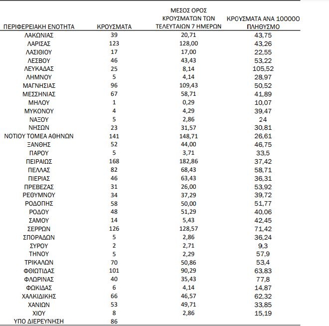 Τα κρούσματα σε ολόκληρη τη χώρα