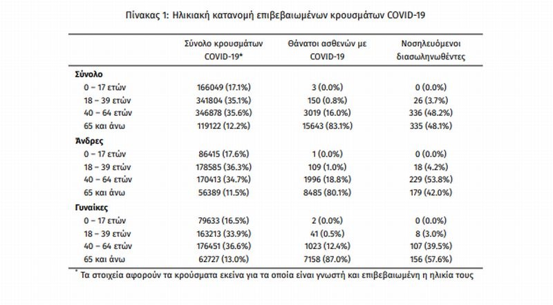 Οι νέοι θάνατοι ασθενών με COVID-19 είναι 99, ενώ από την έναρξη της επιδημίας έχουν καταγραφεί συνολικά 18.815 θάνατοι. Το 95.4% είχε υποκείμενο νόσημα ή/και ηλικία 70 ετών και άνω.
