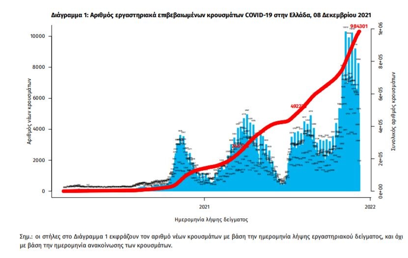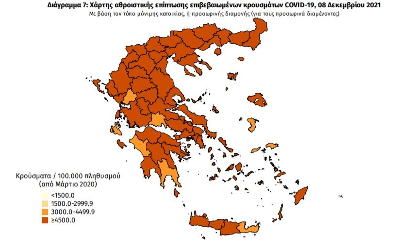 Κορονοϊός - Όλες οι ειδήσεις: Την Τετάρτη 8 Δεκεμβρίου 2021, ο ΕΟΔΥ ανακοίνωσε, 5.899 νέα κρούσματα του νέου ιού στη χώρα, εκ των οποίων τα επτά εντοπίστηκαν σε ελέγχους στις πύλες εισόδου της χώρας.