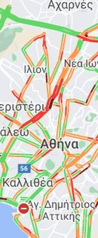 Ο Κηφισός είναι μποτιλιαρισμένος σε άνοδο και κάθοδο από το ύψος του Αιγάλεω μέχρι τον Κόκκινο Μύλο, ενώ κυκλοφοριακά προβλήματα εντοπίζονται στην Αττική Οδό, στους δρόμους γύρω από το κέντρο της Αθήνας και του Πειραιά, στη Λεωφόρο Αθηνών και στη Λεωφόρο Κηφισίας.