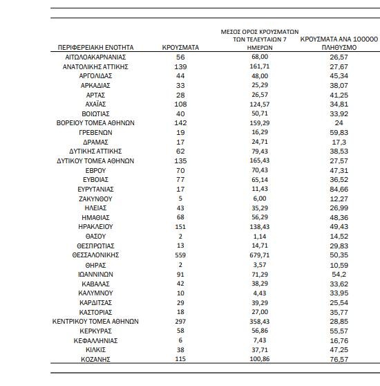 Αναλυτικά τα κρούσματα σε όλη τη χώρα: