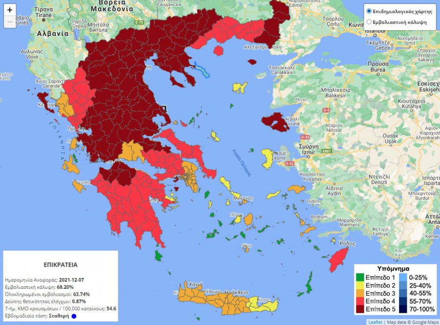 Κρούσματα: Στο κόκκινο και η Λακωνία - Ο επιδημιολογικός χάρτης της χώρας