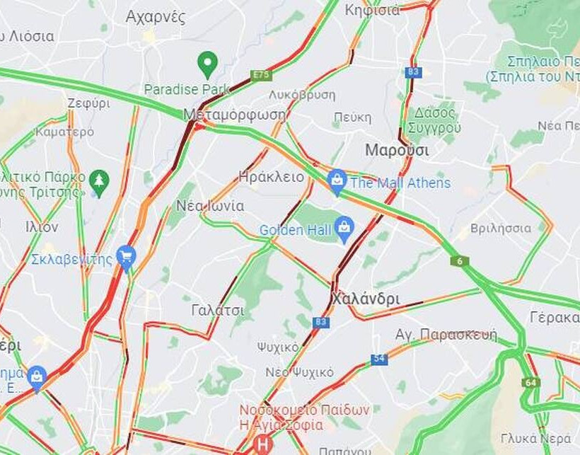Κίνηση τώρα: Κυκλφοριακό χάος στον Κηφισό - Μποτιλιάρισμα και στο κέντρο της Αθήνας