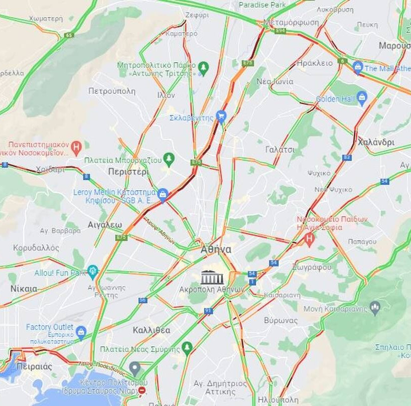 Πιο αυξημένη είναι η κίνηση στο ρεύμα καθόδου του Κηφισού με τα οχήματα να συναντούν και μποτιλιάρισμα στο τμήμα από τη Μεταμόρφωση μέχρι του Ρέντη. Στην άνοδο του Κηφισού η κίνηση καταγράφεται από τη λεωφόρο Αθηνών μέχρι τη Νέα Φιλαδέλφεια.