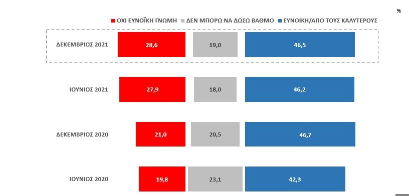 Αξίζει να σημειωθεί ότι στις αντίστοιχες τάσεις, το προηγούμενο εξάμηνο, που δημοσιεύτηκαν τον Ιούνιο του 2021, για την κ. Σακελλαροπούλου είχε ευνοϊκή γνώμη το 46,2%, ενώ το μεγαλύτερο ποσοστό που είχε καταγράψει ήταν το 46,7%, έναν χρόνο πριν, τον Δεκέμβριο του 2020.