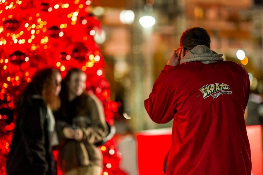 Χριστουγεννιάτικα κλικ κάτω από το κατακόκκινο δέντρο του ΣΚΡΑΤΣ στο Γαλάτσι