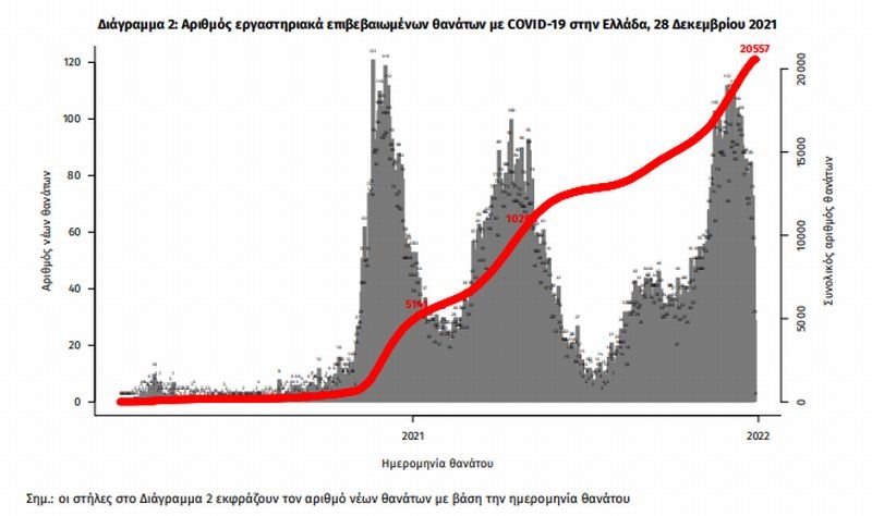 Τα στοιχεία που παρουσιάζονται αφορούν περιστατικά από την επιδημιολογική επιτήρηση της νόσου από το νέο κορωνοϊό (COVID19), με βάση τα δεδομένα που έχουν δηλωθεί στον ΕΟΔΥ και καταγραφεί μέχρι τις 28 Δεκεμβρίου 2021 (ώρα 15:00).