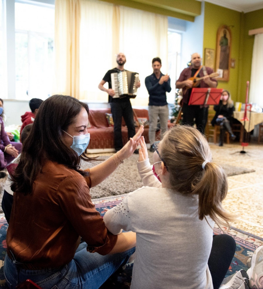 Την ψυχαγωγία των παιδιών ανέλαβαν ο Λευτέρης Ελευθερίου και ο Αλκιβιάδης Κωνσταντόπουλος. Σε κλίμα χαράς, και με άκρως γιορτινή διάθεση, οι καλλιτέχνες ταξίδεψαν μουσικά τα παιδιά με κάλαντα από όλη την Ελλάδα, συζήτησαν μαζί τους και τα ψυχαγωγήσαν με τις διασκεδαστικές ιστορίες τους.