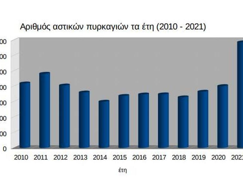 Συνολικά καταγράφηκαν σε όλη την Ελλάδα 34.343 αστικές πυρκαγιές. Ο αριθμός τους είναι αυξημένος κατά 70,8% σε σχέση με το 2020.